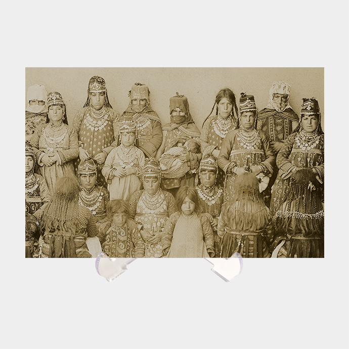 Van’da Ermeni köylü kadınları yerel giysileriyle gösteren bir fotokart.