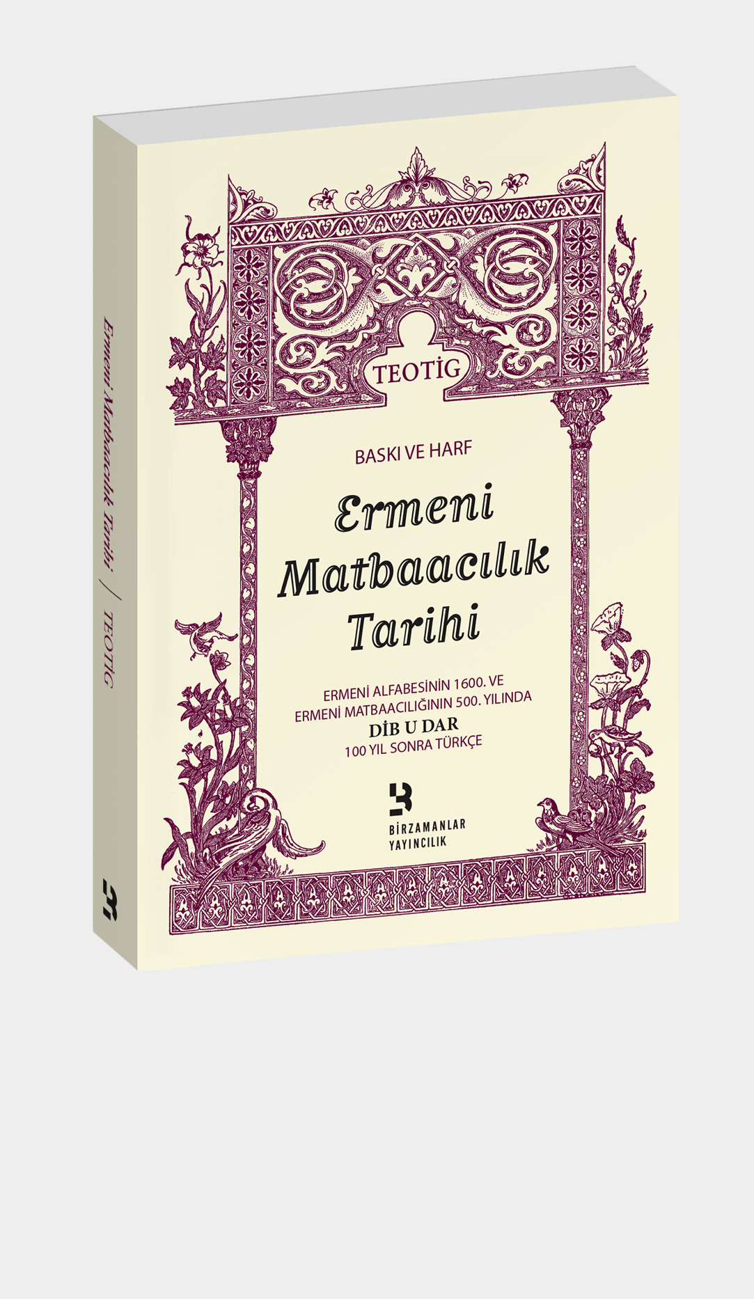 Ermeni alfabesinin Mesrob Maşdots tarafından icadının 1500., ilk Ermeni matbaasının Hagop Meğabard tarafından kuruluşunun 400. yılında, Ermeni matbaacı ve yayıncılarına adanmış “Dib u Dar” (Baskı ve Harf) adlı eseri, gerek estetik açıdan ve gerekse içeriği itibarıyla büyük bir başarıdır. Teotig bu kitapta, 20 ülkedeki 92 şehirde faaliyet göstermiş 462 Ermeni matbaası, onların harf kalıpları ve kurucularıyla ilgili bilgiler verir. Birzamanlar Yayıncılık tarafından bu eserin tıpkıbasımı yapılmıştır.