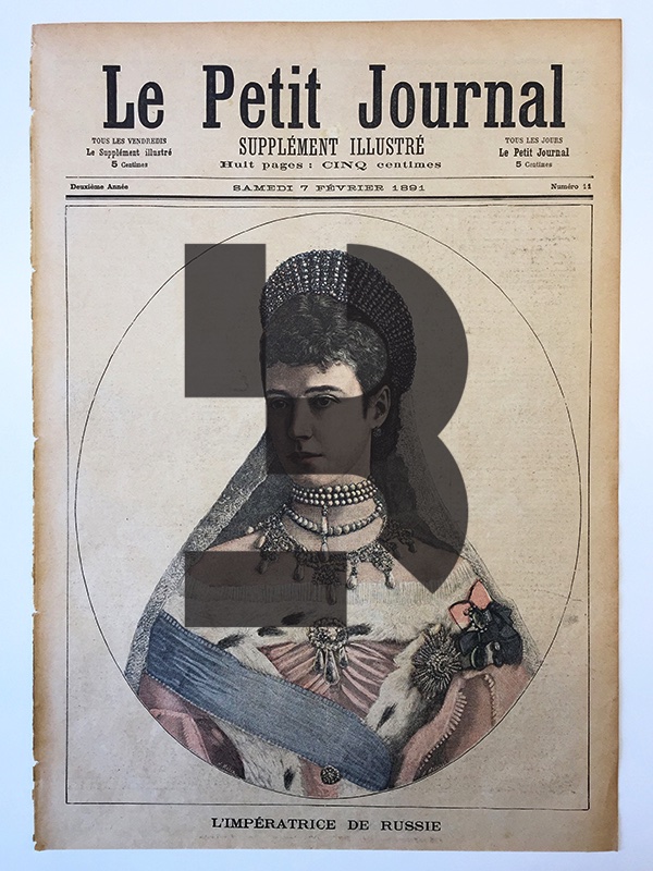 | Page and Dimensions | : | L'Imperatrice de Russie front cover, back cover is "Le Maire de Rennes" issue 11, 2. year, 1891, 30 x 44 cm |